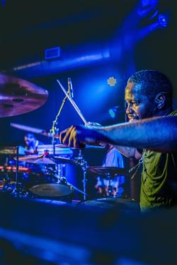 Kareem L. Thompson Sr. was born and raised in Chester, PA. He grew up playing in church and began touring the world at the age of 17. His appetite for different styles of music has afforded him the opportunity to accompany a plethora of artists in gospel, hip hop, jazz, fusion, and country. Kareem stamped his pasport with places like Africa and Isreal, just to name a few. Touring has also landed him in every state, nationwide. Some of his influences are Travis Barker, Jason Coleman, Bobby Z, Stokely Williams, Ernie Saunders, and Dave Weckl.